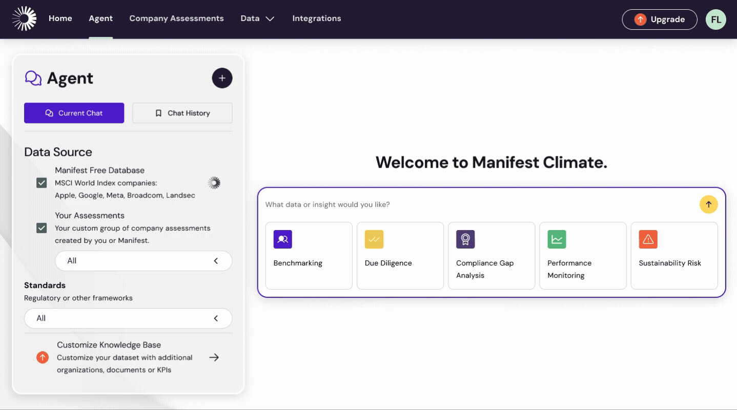 Completely configurable and customizable, Manifest Climate adapts to your workflows, frameworks, and priorities. Map to custom methodologies, analyze private inputs, and generate proprietary insights your competitors can't replicate—all without changing how you work.