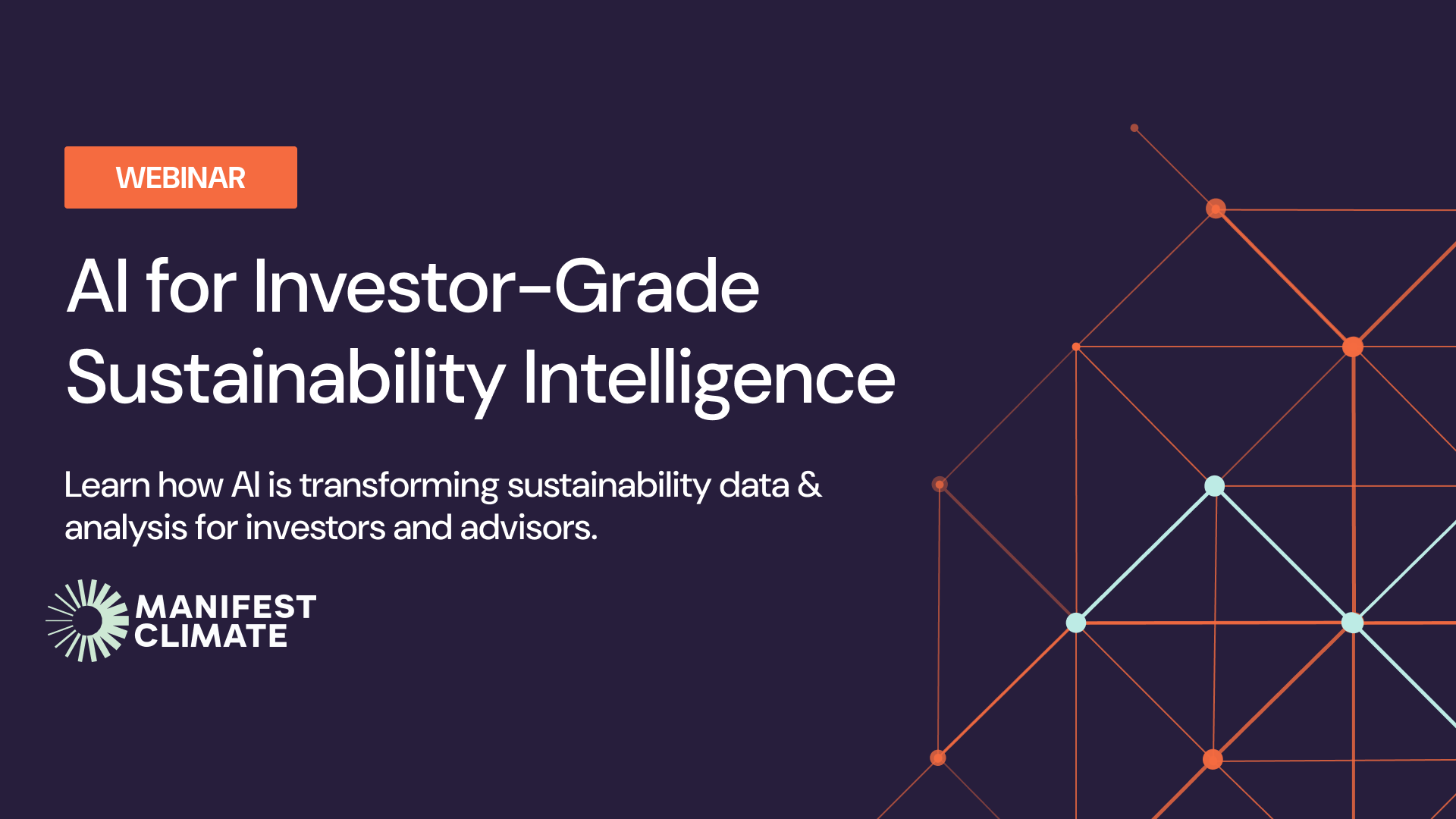 Overview As sustainability data grows in volume and complexity, investors, financial institutions, and their advisors need smarter ways to extract actionable insights. AI is rapidly transforming ESG and sustainability intelligence—helping investors and advisors monitor performance, assess risks, and make informed decisions at scale. Join Manifest Climate for an exclusive webinar exploring how AI can instantly […]